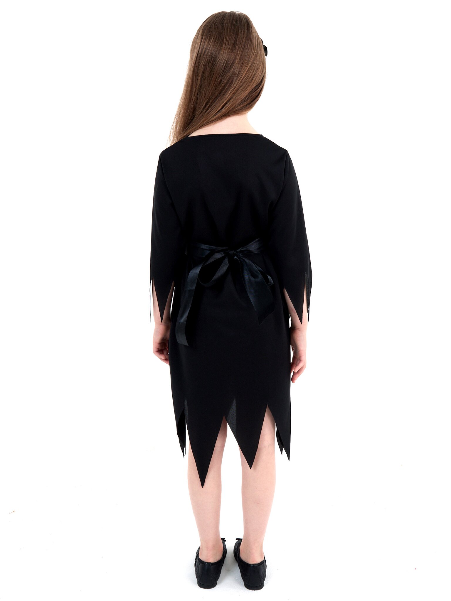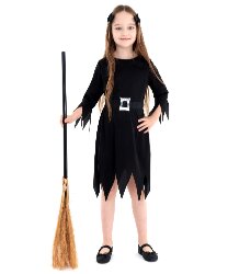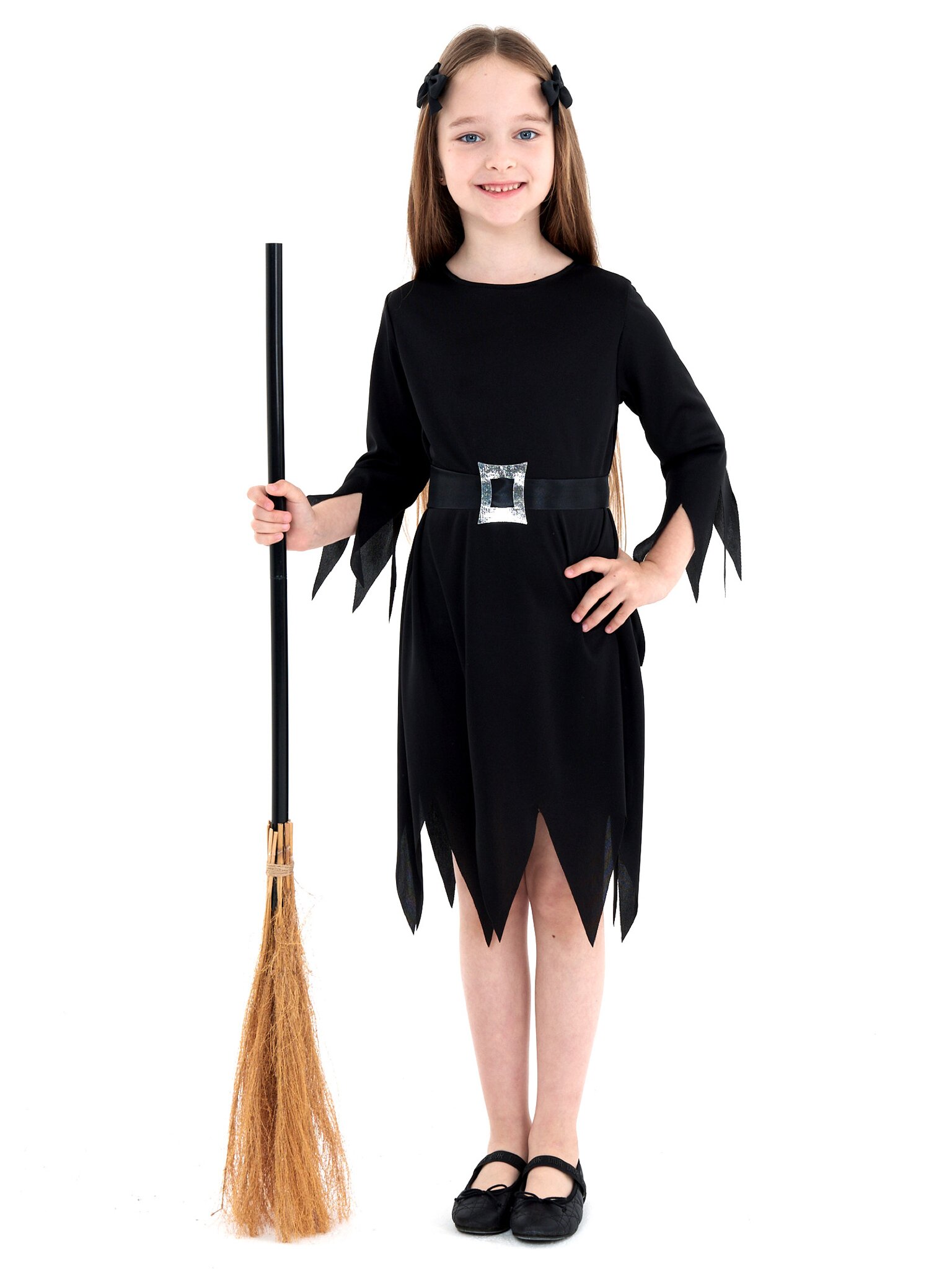Детское платье "Ведьмочка" идеально подходит для создания образа ведьмы или вампирши на Хэллоуин или детский утренник. Это черное платье выполнено из качественного полиэстера и идет в комплекте с поясом, добавляя завершенность праздничному виду. Подходит для девочек, оно воплощает тематический готический стиль, создавая атмосферу мистики и волшебства. Платье подчёркивает элегантность и уникальность вашего ребёнка на любом праздничном мероприятии.