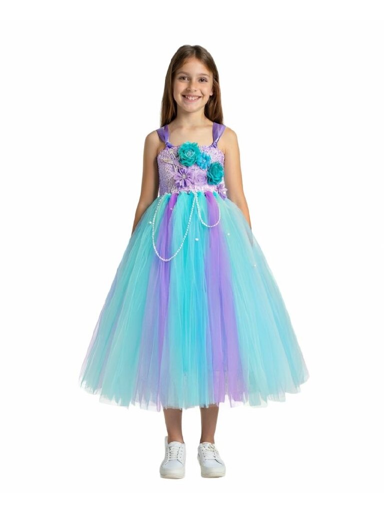 Детский карнавальный костюм "Русалка" станет восхитительным нарядом для юных поклонниц сказочных приключений. Изготовлено из легкого полиэстера, это платье подарит чувство комфорта и свободы движений. Яркие голубые и фиолетовые оттенки создают волшебное настроение. Идеально подойдет для детских утренников и праздников. В комплект входит пышное платье с сетчатым лифом, украшенное морской звездой и жемчугом, и ободок, украшенный цветами, который завершит образ маленькой истории о море. Прекрасный выбор для тех, кто мечтает быть маленькой русалочкой.
