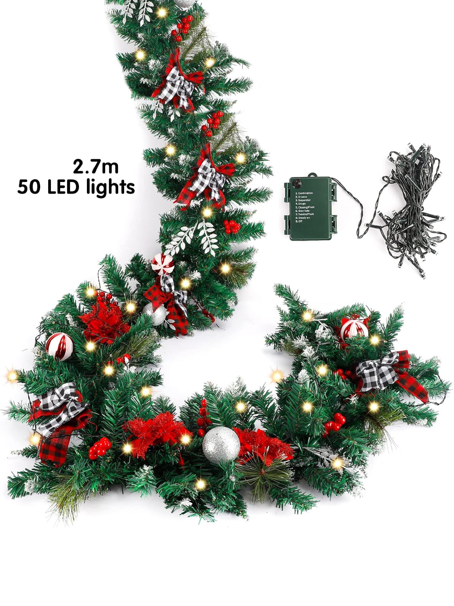 Добавьте магии вашему дому с новогодней хвойной светящейся гирляндой. Эта гирлянда выполнена в виде еловых веток с яркими елочными игрушками и мерцающими светодиодными огоньками, создающими праздничную атмосферу Рождества и Нового года. Идеально подходит для декорирования каминов, дверных проемов и окон. Изготовлена из высококачественного ПВХ, гирлянда гарантирует долгий срок службы и безопасное использование. Подарите своему дому праздничное настроение с блеском и цветом. Длина гирлянды 2.7 метра, 50 LED лампочек. Несколько режимов свечения.